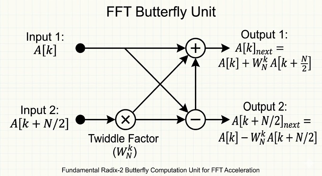 Hệ số xoay (Twiddle Factor - ): Giá trị phức được nhân với đầu vào thứ hai trước khi kết hợp.